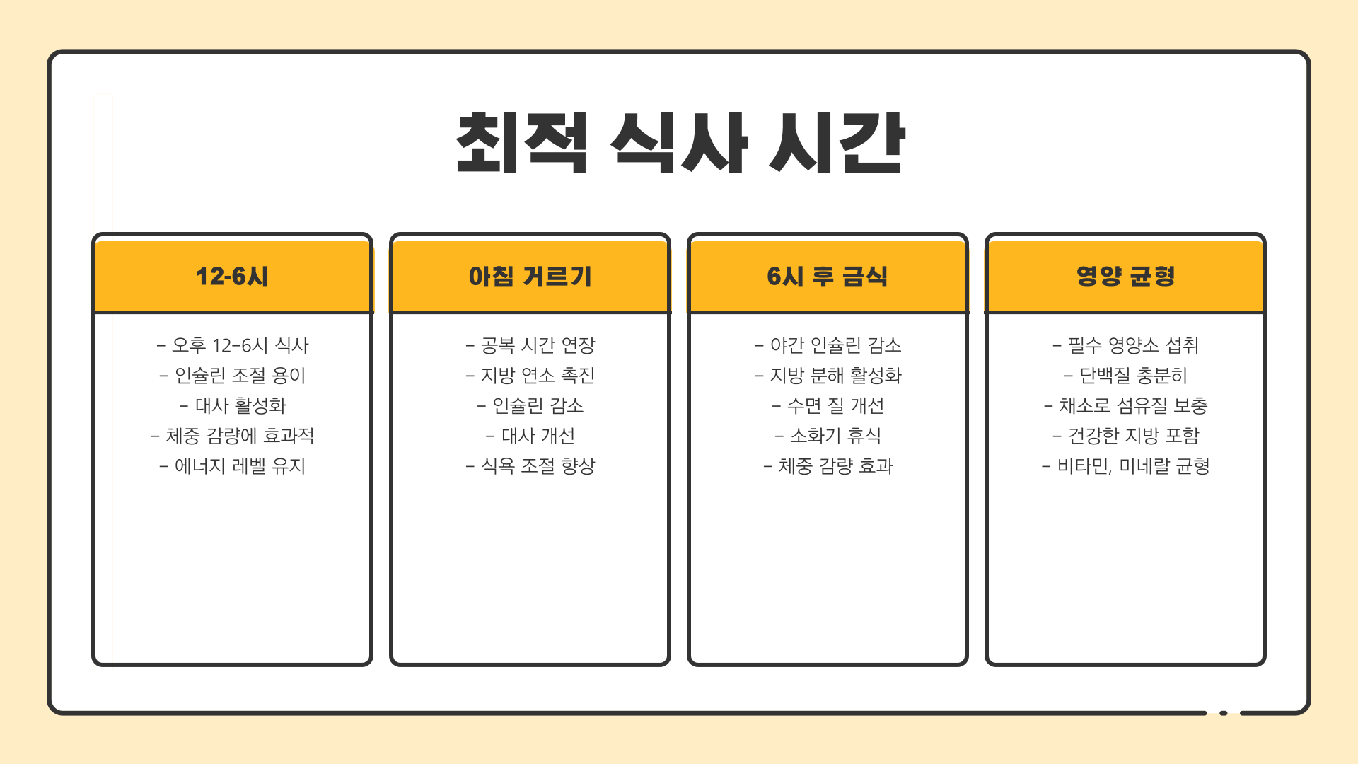 3️⃣ 식사 시간 안에 충분한 영양 섭취가 중요해요. 한 끼를 먹더라도 영양 균형이 맞춰져야 해요