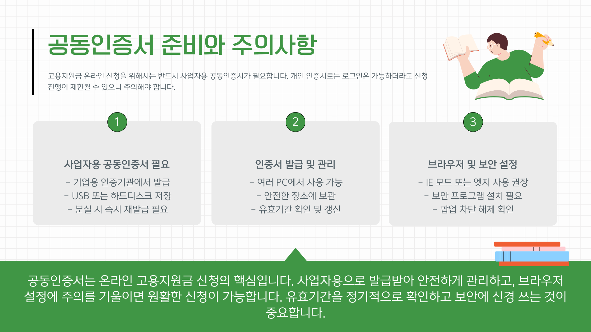 고용지원금 온라인 신청을 위해서는 반드시 ‘사업자용 공동인증서’가 필요합니다. 개인 인증서로는 로그인은 가능하더라도 신청 진행이 제한될 수 있으니 유의해야 해요.