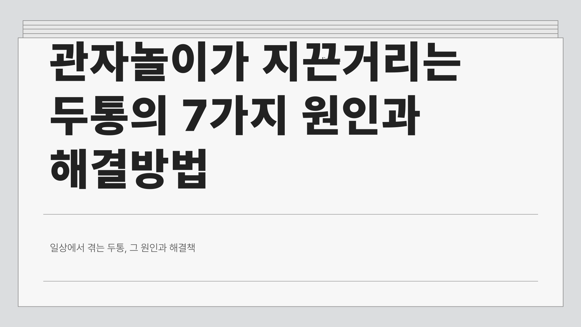 특히, 갑작스럽게 심한 두통이 발생하거나 지속적으로 반복된다면, 단순한 피로로 치부하지 말고 원인을 분석하는 것이 중요합니다. 오늘은 관자놀이가 지끈거릴 때 반드시 체크해야 할 7가지 요소에 대해 자세히 알아보겠습니다.