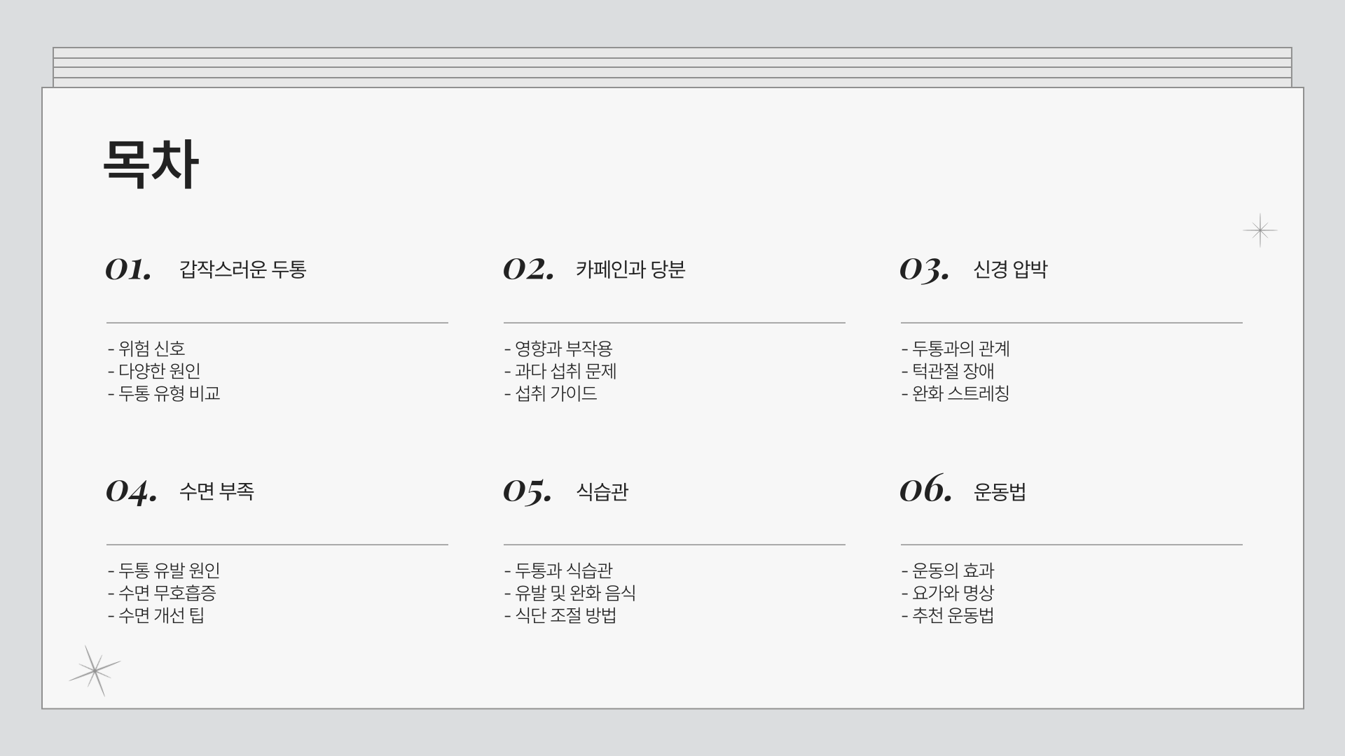 일상에서 작은 습관을 바꾸는 것만으로도 두통을 줄일 수 있습니다. 오늘부터 실천해 보세요! 😊