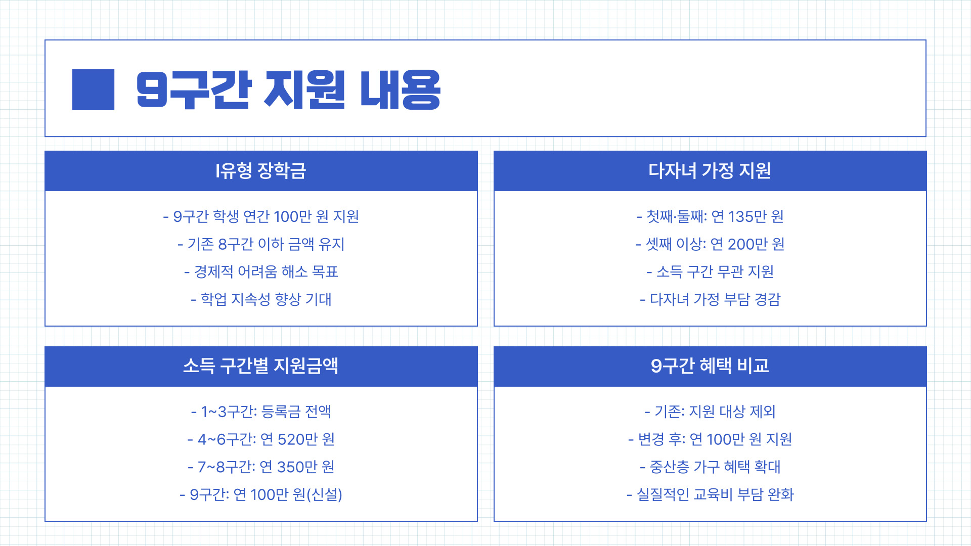 🔹 중산층 가구 부담 완화 9구간 학생도 연간 100만 원 지원