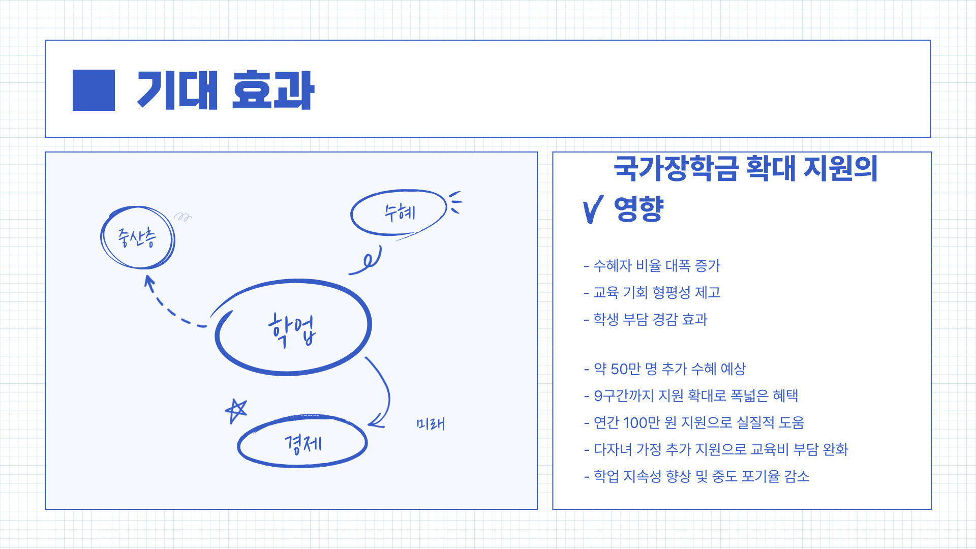 🔹 추가 수혜자 증가: 약 50만 명의 대학생이 새롭게 장학금 혜택을 받게 됨