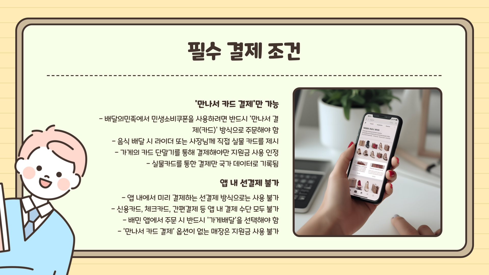 오늘은 배민에서 민생지원금을 정상적으로 결제하는 방법을 중심으로, 사용 가능한 매장을 확인하는 요령, 실패 사례, 자주 묻는 질문까지 자세히 안내해 드릴게요.