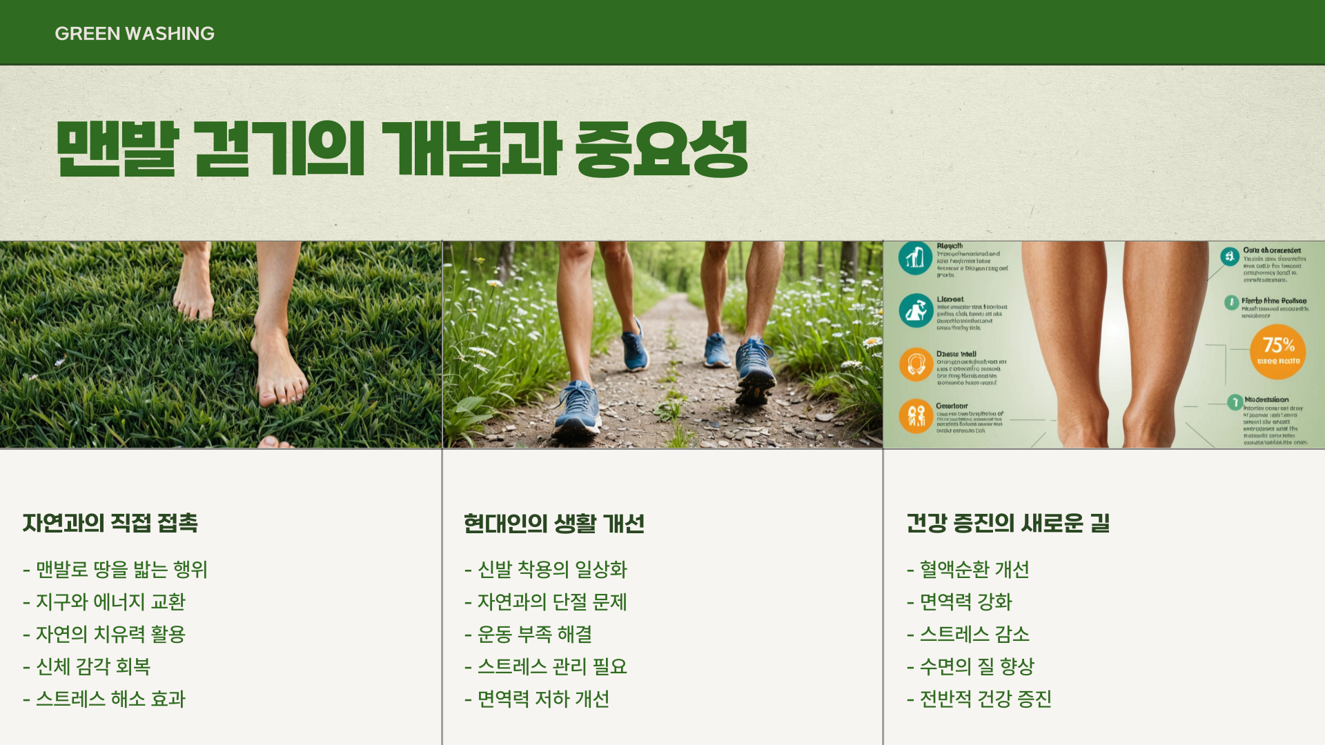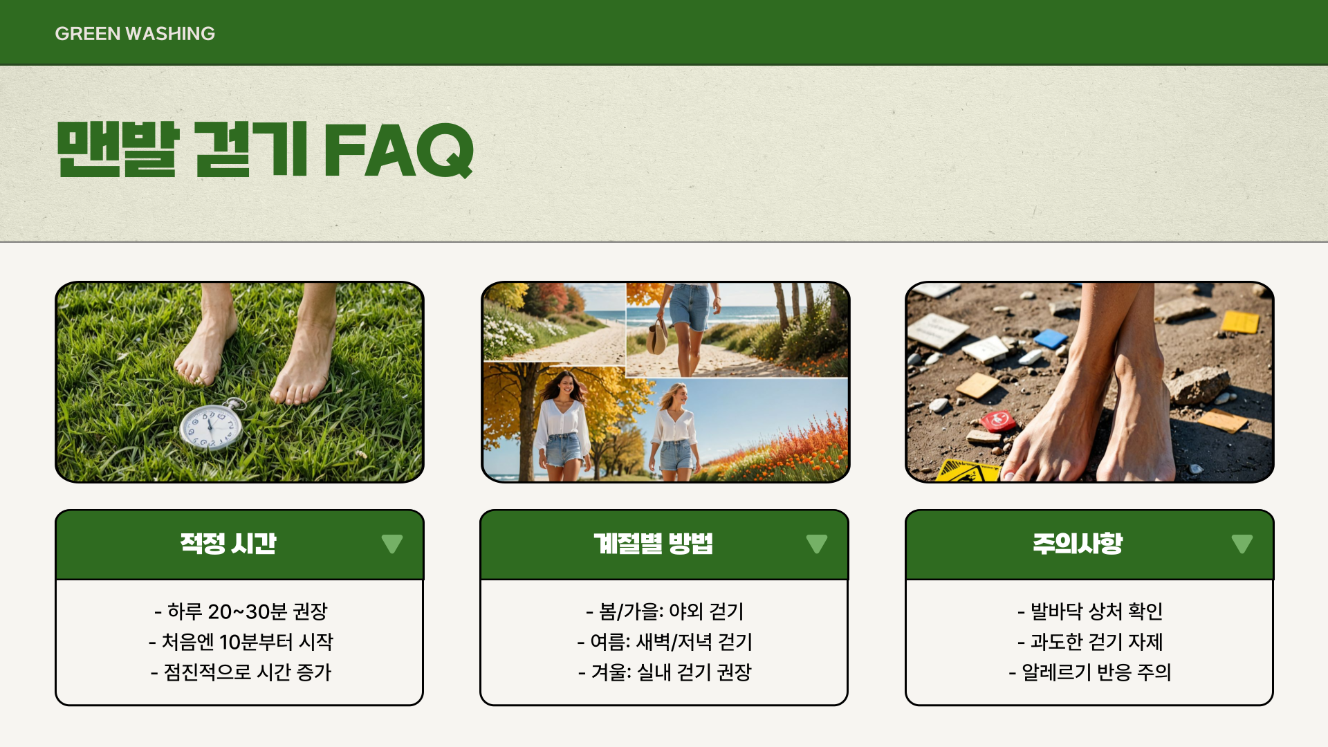 오늘부터 실천해 보세요! 건강한 삶을 위한 가장 쉬운 방법, 바로 맨발 걷기입니다.