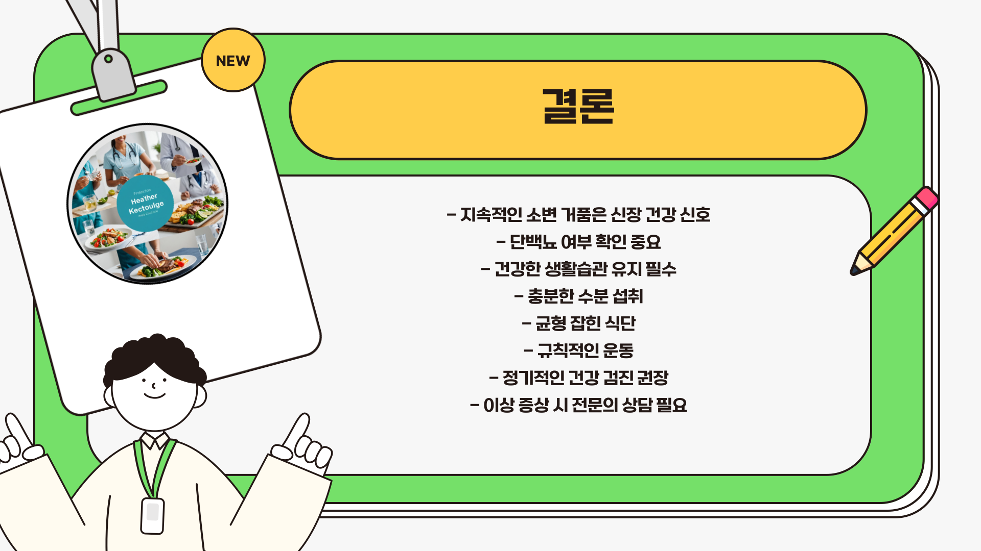 거품뇨가 신장 건강의 중요한 신호일 수 있는 만큼, 자신의 몸 상태를 잘 살피고 필요한 경우 전문의 상담을 받아보세요!