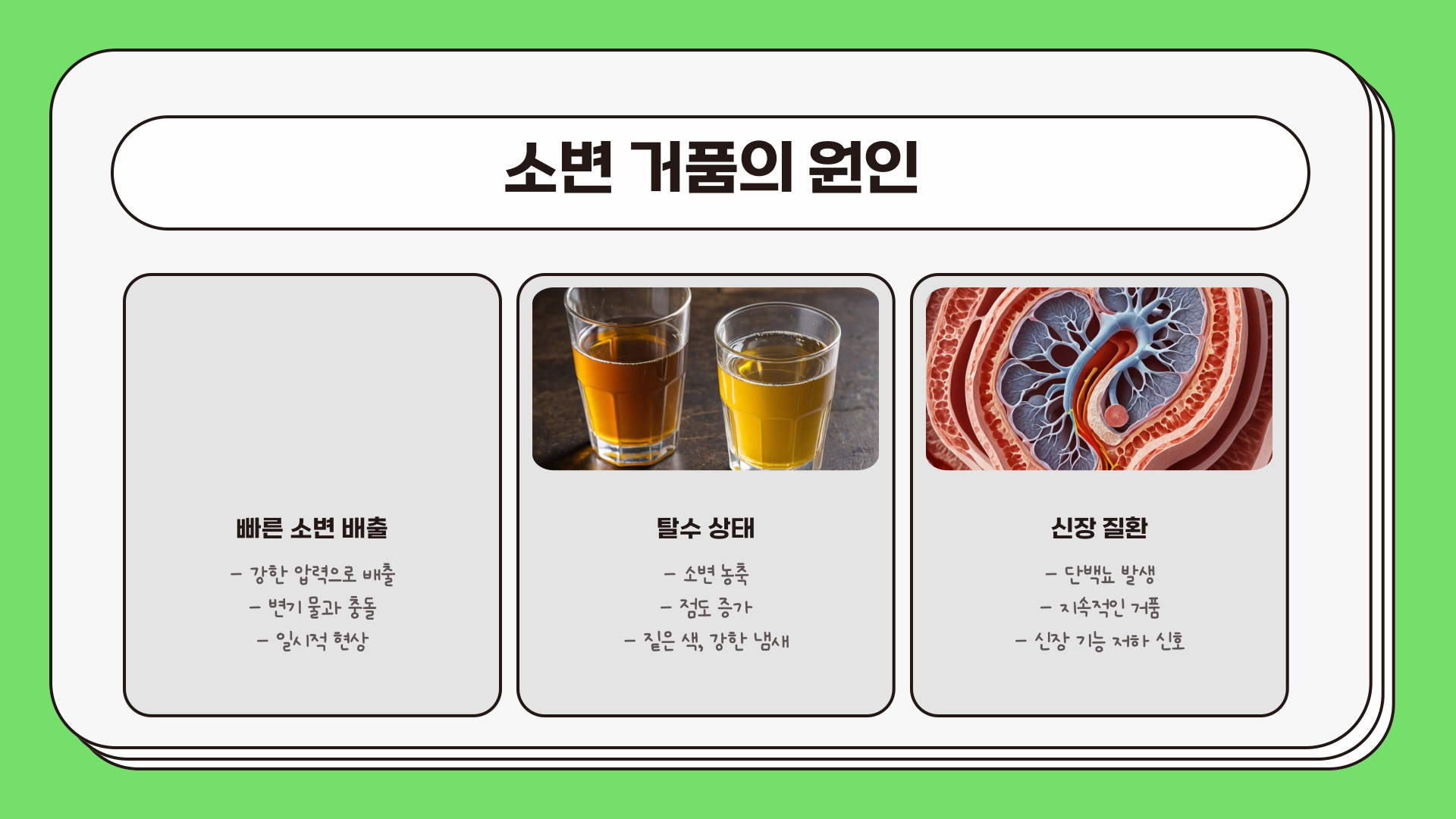 소변 거품은 일시적인 현상일 수도 있지만, 지속적으로 나타난다면 건강에 이상이 있을 가능성이 높아요. 특히 신장과 관련된 질환이 원인일 수 있으므로 주의 깊게 살펴보는 것이 중요해요. 💡