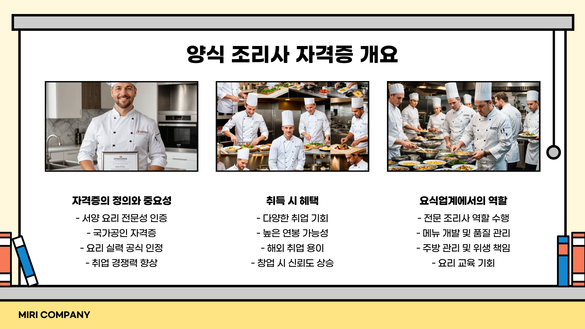 이 글에서는 양식 조리사 자격증의 개요부터 시험 준비 방법, 취업 기회까지 꼼꼼하게 알려드립니다.