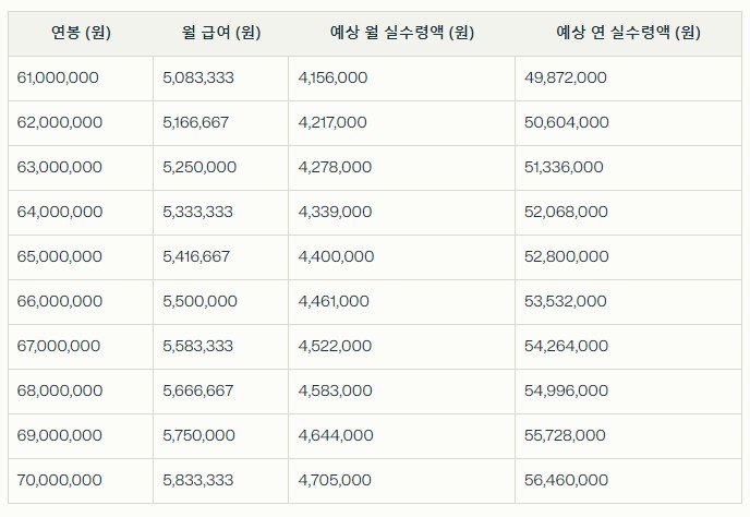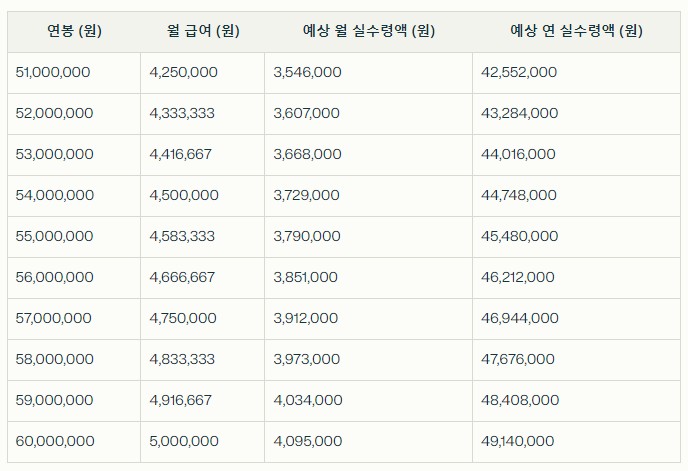 📊 2025년 연봉과 실수령액 비교표