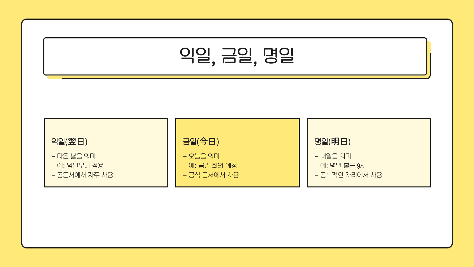 날짜와 관련된 용어 중에서 특히 ‘익일’, ‘금일’, ‘명일’은 많은 사람이 혼동하는 표현입니다. 각각의 정확한 의미와 올바른 사용법을 알아보겠습니다.