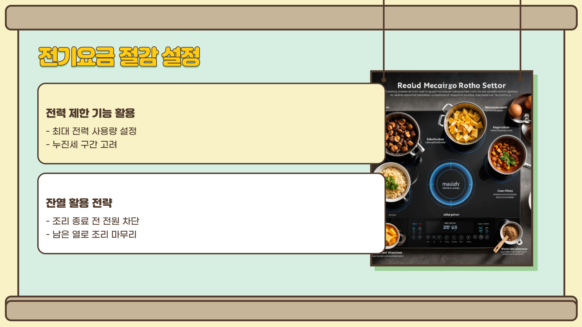 인덕션의 전기요금을 절감하려면 올바른 설정과 사용 습관이 중요합니다. 다음과 같은 설정을 활용하면 전력 소비를 줄일 수 있습니다.