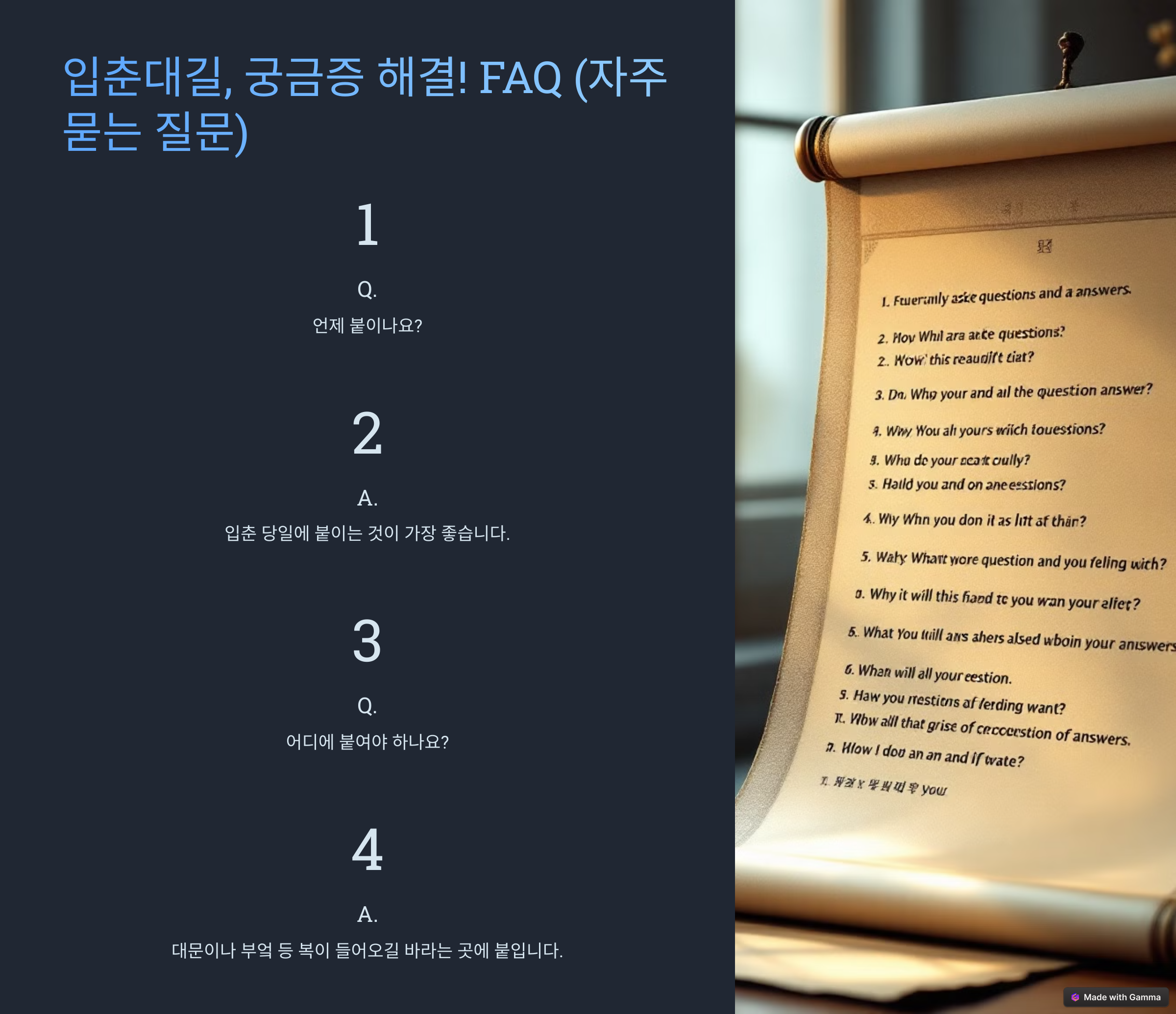 이제 입춘대길을 완벽하게 붙일 수 있겠죠? 🎊 마지막으로, 입춘대길과 관련해 자주 묻는 질문(FAQ)을 정리해 볼게요!