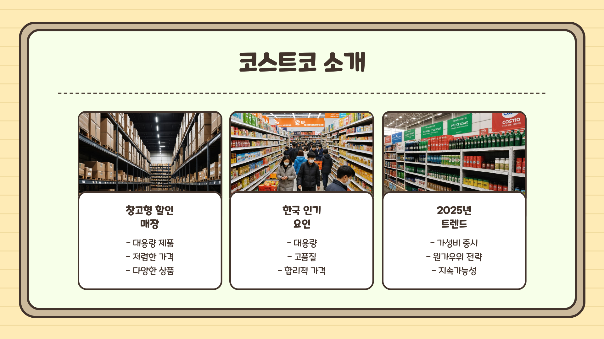 코스트코는 전 세계적으로 사랑받는 창고형 할인 매장이에요. 특히 한국에서는 대용량, 고품질, 그리고 합리적인 가격이라는 3박자를 갖춘 쇼핑 장소로 꾸준히 인기를 끌고 있어요.