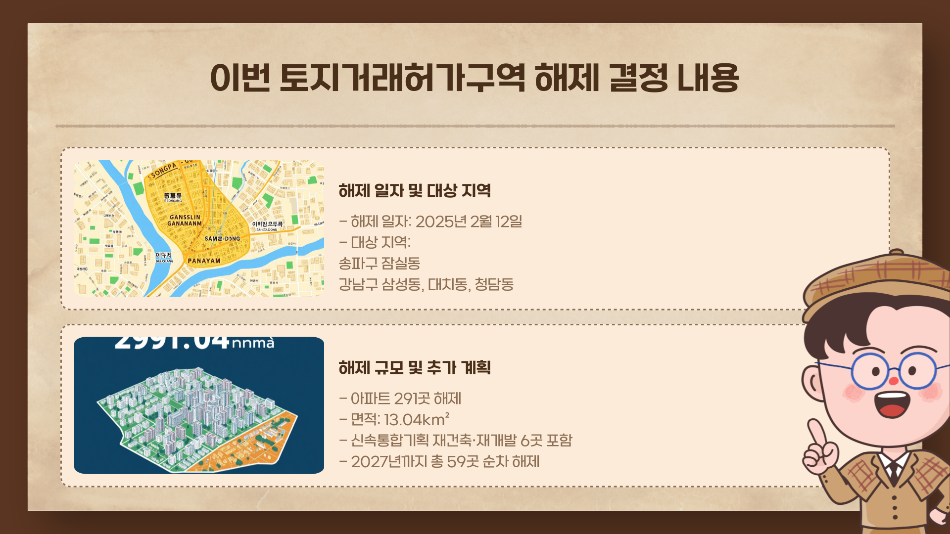 ✅ 해제 지역: 송파구 잠실동, 강남구 삼성동, 대치동, 청담동 (아파트 291곳)