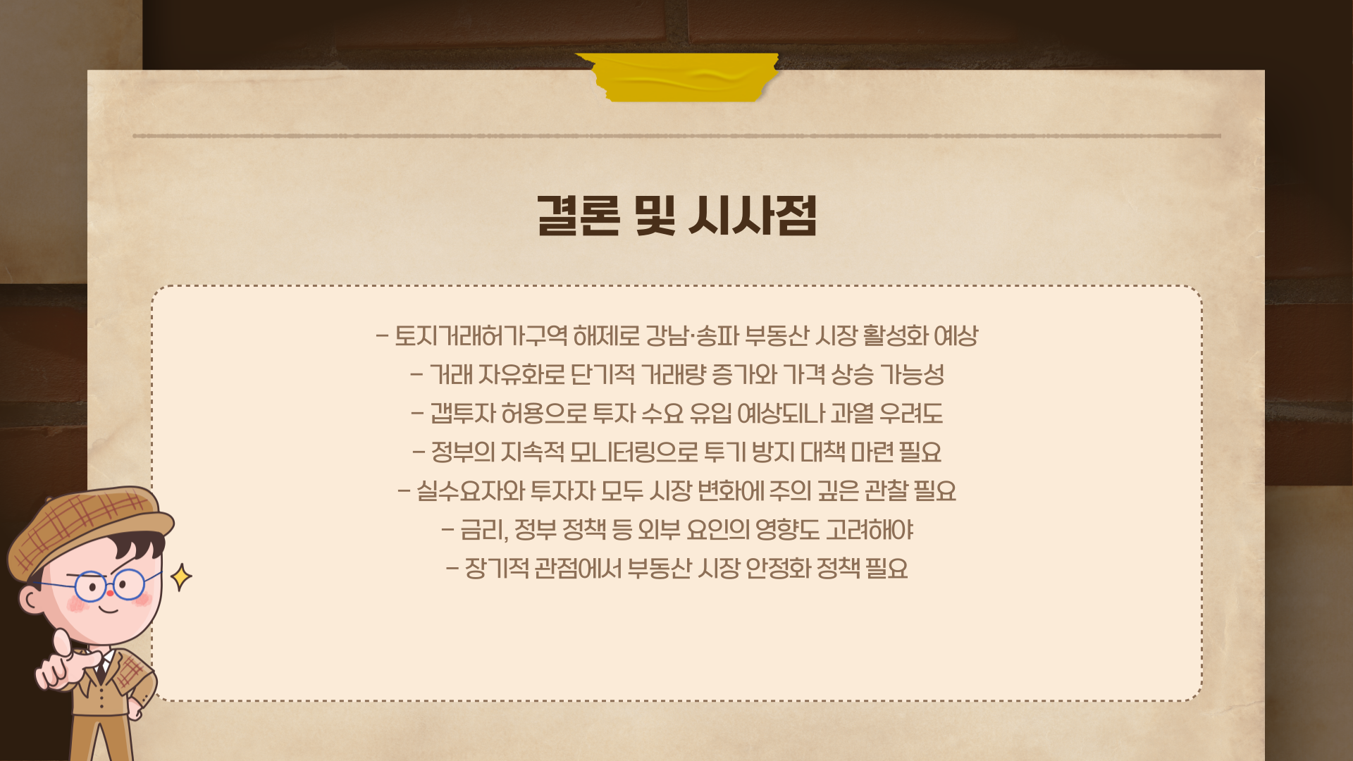 정부가 추가적인 부동산 규제를 내놓을지도 중요한 변수예요. 예를 들어, 대출 규제가 강화되거나 양도세 혜택이 줄어들면 투자 수요가 줄어들 수도 있어요.