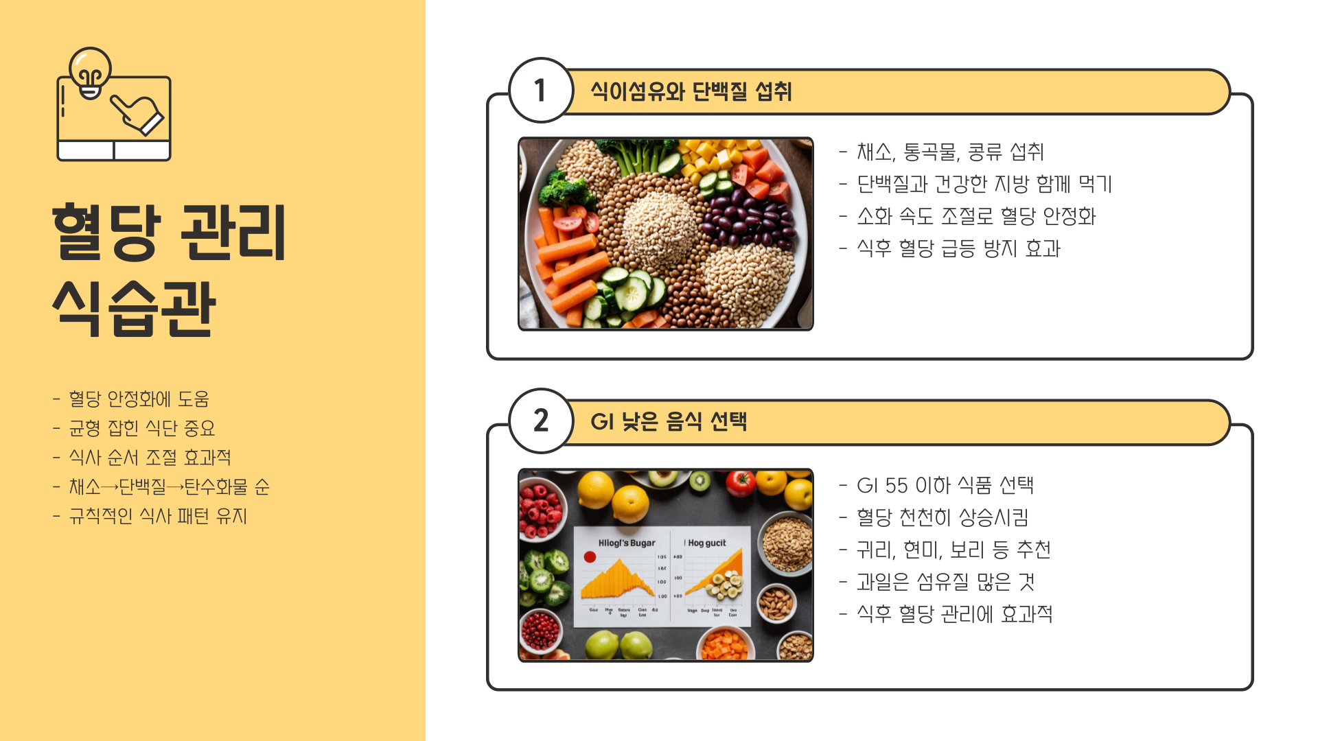 혈당 조절에 좋은 식습관을 유지하면 당뇨병 예방뿐만 아니라 전반적인 건강에도 도움이 됩니다.