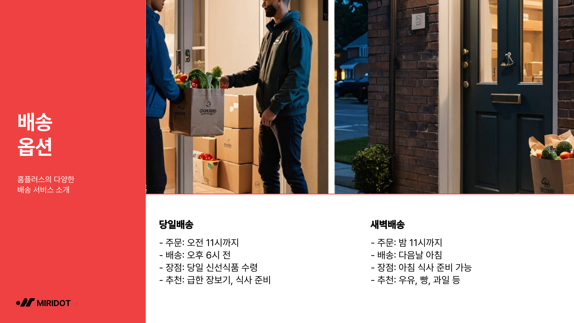 홈플러스는 다양한 배송 서비스를 제공하고 있어요. 특히 당일배송과 새벽배송이 인기인데, 각각 장점이 달라요! 🚚