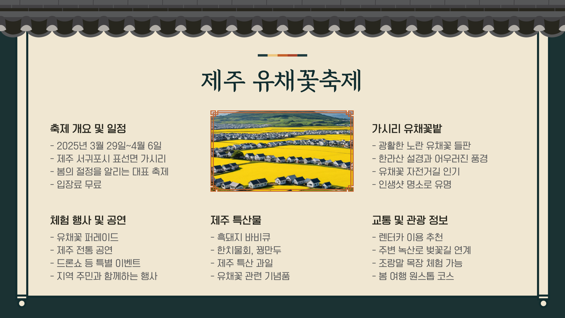 제주 유채꽃축제 정보 요약