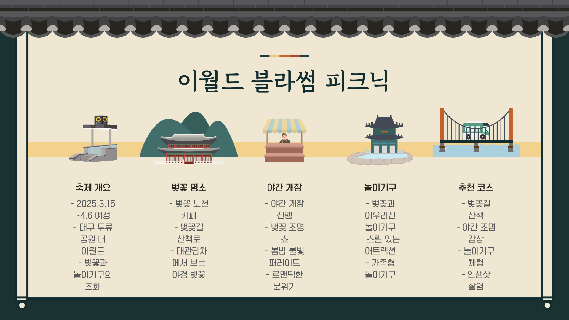 | 2025년 3월 15일 ~ 4월 6일 | 대구광역시 이월드 | 놀이기구+벚꽃+야경 |