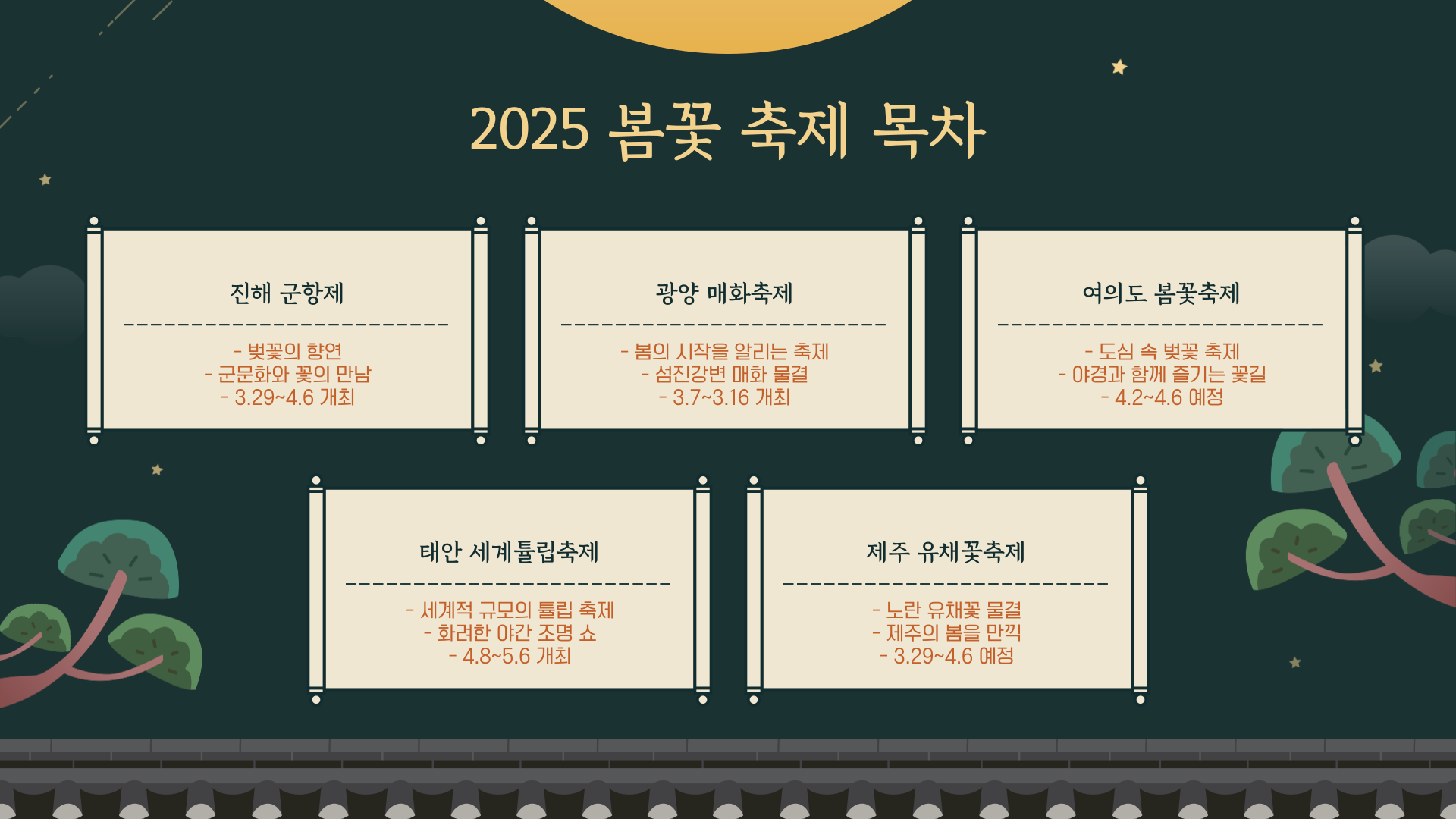 지금부터 2025년 봄, 각 축제별 정보와 함께 사진 찍기 좋은 명소와 숨은 포인트까지 차례대로 알려드릴게요! 표와 함께 꼼꼼하게 확인해 보세요!